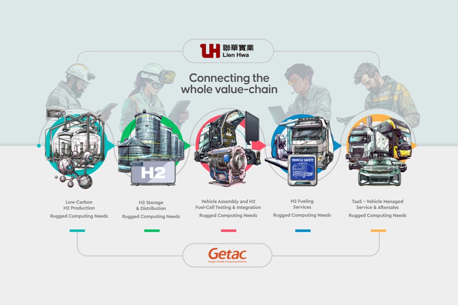 The Mitac-Synnex group in Taiwan, a conglomerate covering multiple sectors, including industrial gas, petrochemicals, IT, manufacturing and distribution, with consolidated revenues of US $84 billion in 2023, has recently created a new business division – LienHwa New Energy (LHNE). LHNE has been set up to consolidate the group’s efforts in decarbonization and is primarily responsible for driving coordinated efforts to build a hydrogen economy in Taiwan. Leveraging multiple companies within the group, including Linde LienHwa, Mitac, and Getac, the Lien Hwa group is strategically positioning itself in the hydrogen mobility value chain, spanning hydrogen generation and supply, fuel cell stack manufacturing, system integration, vehicle assembly, and aftersales service. Automotive continues to be a key focus for Getac Technology Corp and Getac’s rugged computing and digital software solutions have been designed to play a critical role across the value chain, both for partners and customers.